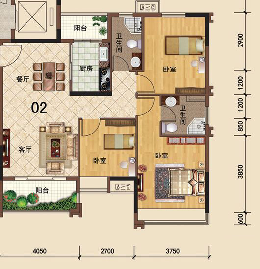 • 佛山美的花湾城3座01、02单元4座01、02、04单元90.00㎡