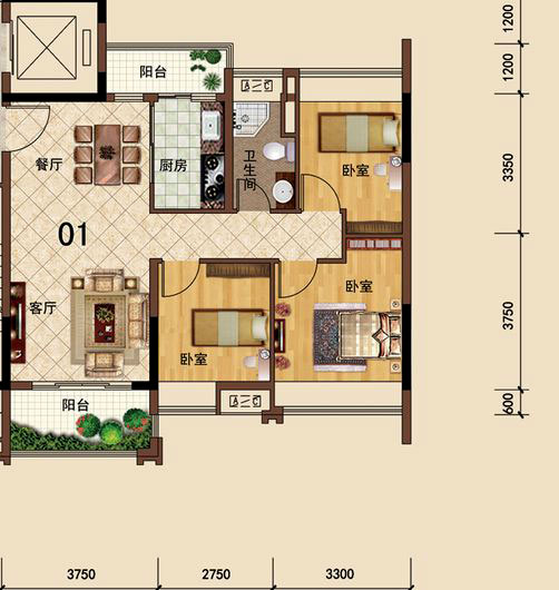 • 佛山美的花湾城3座01、02单元4座01、02、04单元90.00㎡