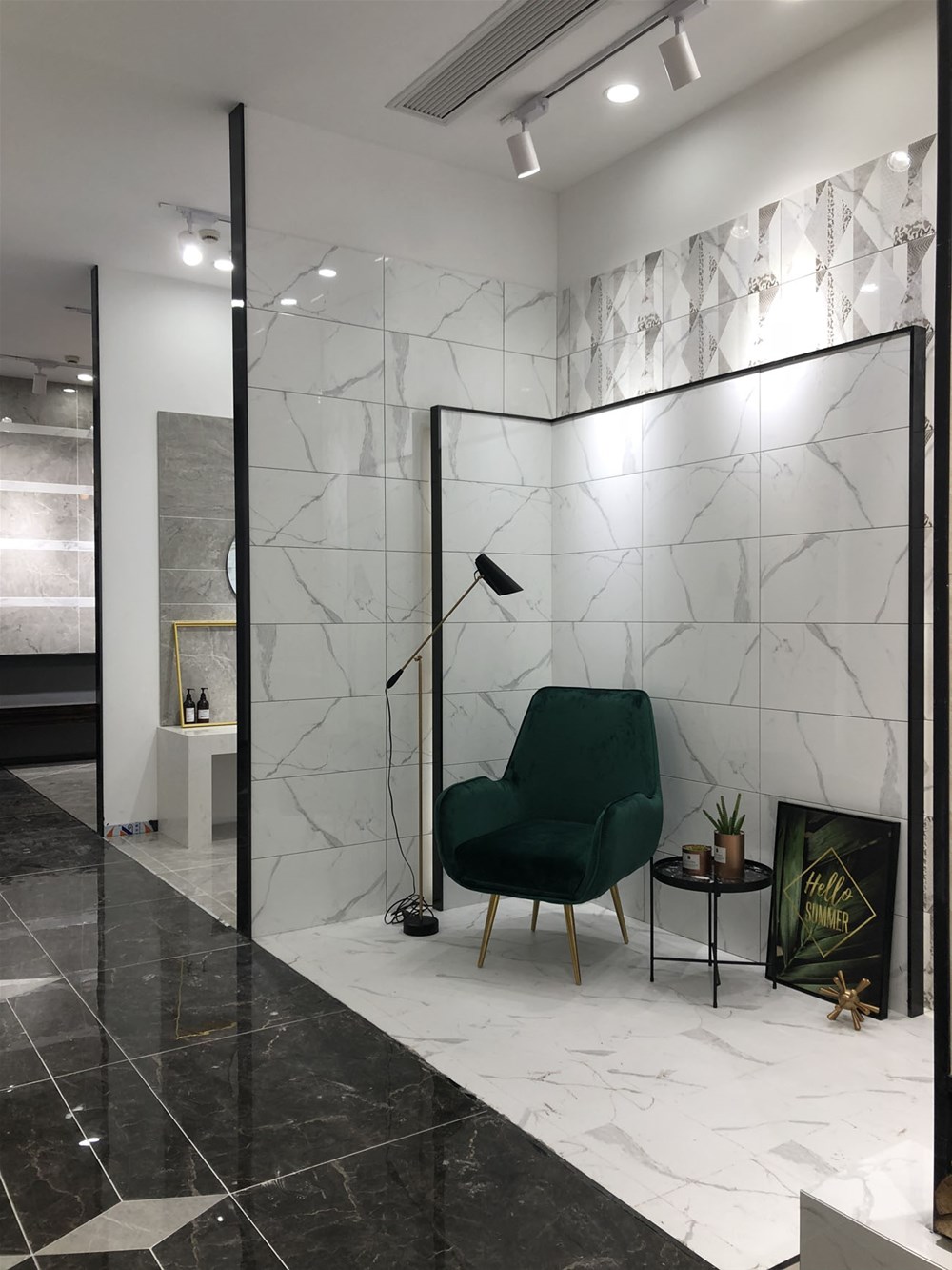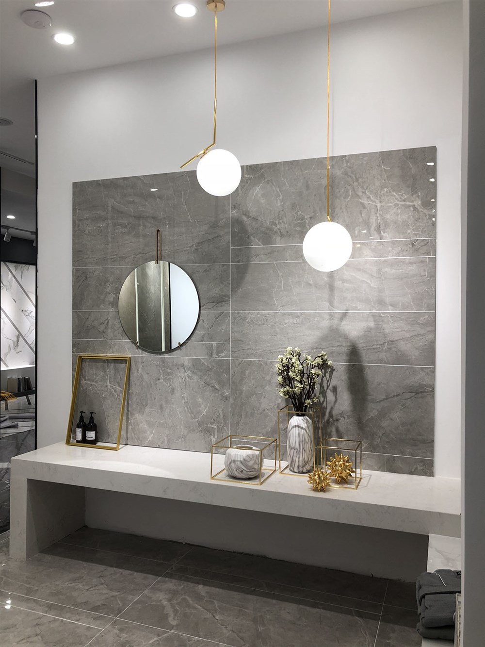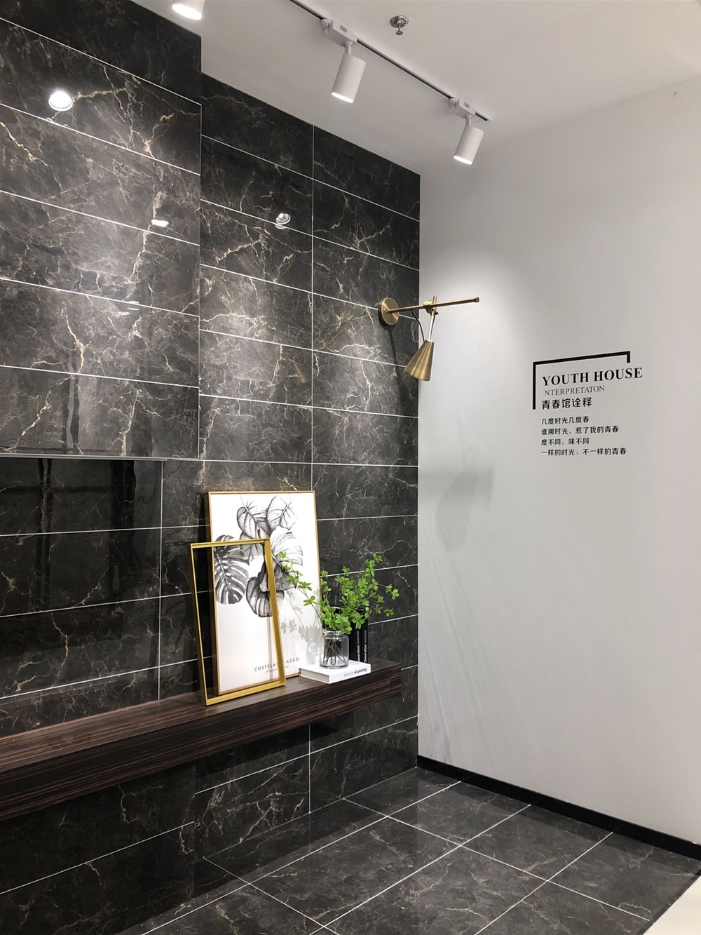 这款产品可作电视背景墙、客厅地砖、商场地砖、酒店大堂用砖都非常显大气。