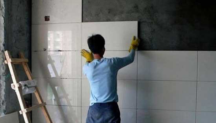 清除瓷砖背面的灰尘和杂物,先将少量的粘结剂胶浆,用抹刀在瓷砖背面满刮。然后再次将适量(3-10mm)粘结剂胶浆抹在砖背面,用锯齿刀刮出条纹,将抹有粘接剂胶浆瓷砖按要求粘贴到墙体恰当位置上。
