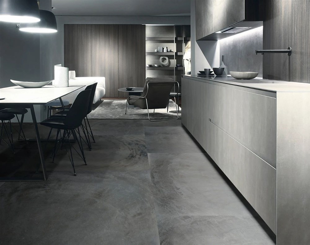 这么多工艺的叠加打造出高端岩板质感面,产品使用的原料、釉料和细干粒都是进口的天然的,零渗透零甲醛,食品级绿色环保,很耐污好打理,应用方面就更不用说了,900×1800的黄金规格不管是大空间还是小空间、二次加工、上墙下地都能很好的应用,也是现在岩板市场的潮流规格。