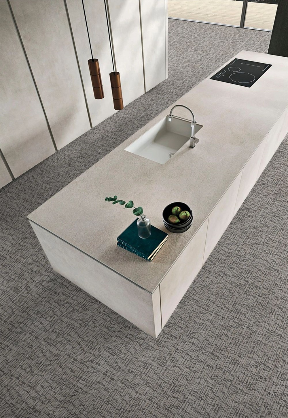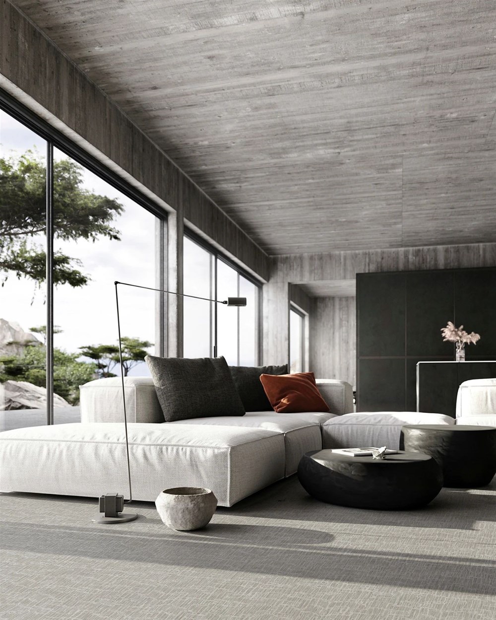 灵感源于著名画家毕加索追求的以厚重、粗犷的笔触带来的直率而又单纯的绘画表现.将水泥的粗放性与纹理的纵深感结合起来,在简约中表达厚重感,打造出一种极具现代感和饱满质感的装饰效果。