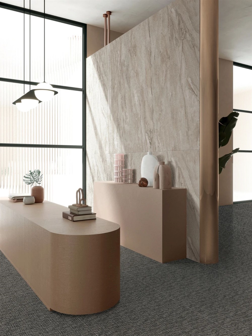 这块产品借鉴了海滩贝壳石的天然纹理作为设计灵感,保留稀有珍珠臻品的优雅和别致,通过升级工艺让砖面兼具复古风格和现代风情,13°的哑光深刻打造立体质感纹理,在极具层次感的视觉冲击中张扬空间格调和个性,柔和,安详,给人以温暖、安静、放松的体验。