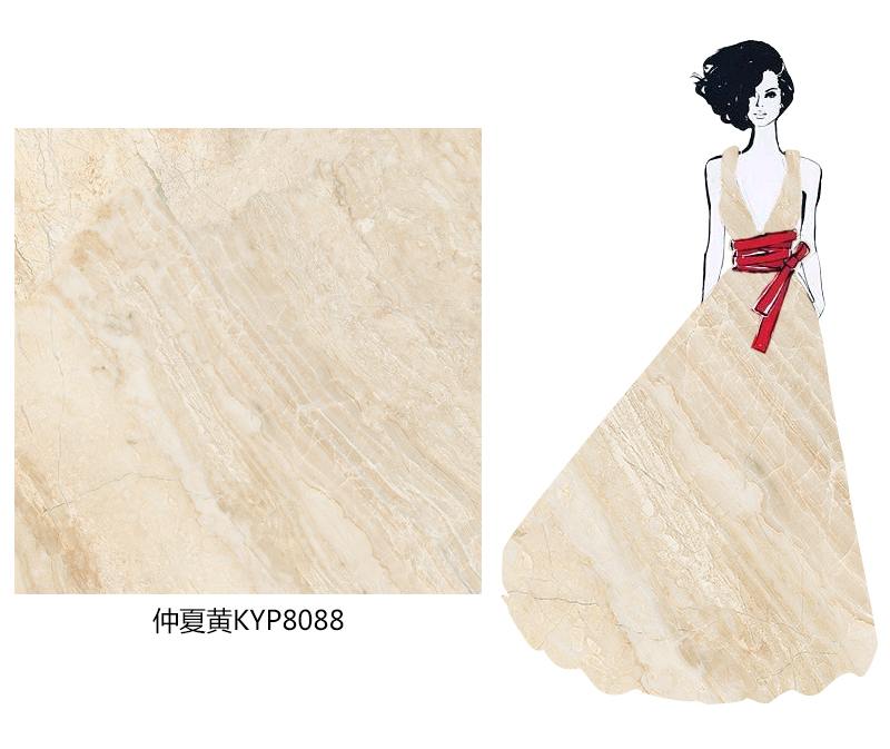 灵感来源于法国著名石材凡尔赛砂岩,承袭了世界闻名的法国凡尔赛宫殿建筑艺术的浪漫气息,浅黄柔和的色调,配合流砂细腻的线条,简洁柔顺、行云流水般的质感,自然温婉,装饰空间彰显高贵优雅的气度。