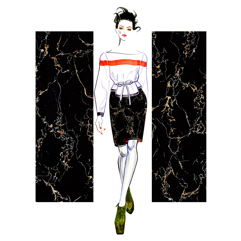 源自石材王国意大利著名石材黑金花大理石,产自意大利北部阿尔卑斯山顶,早在古罗马凯撒大帝时代大量用于建筑装饰,历来是意大利建筑经典石材,黑色主调,刚毅酷炫,白色石纹纵横交错,极富律动与层次,广泛应用于各种风格的建筑之中,斑驳的黑色也成为了永不过时的经典色调。