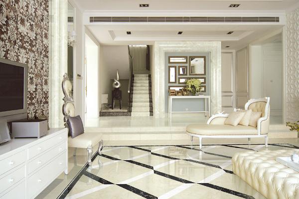 此客厅运用香蕉APP直播陶大理石瓷砖金线莎安娜KYP8003瓷砖铺贴,如同置身于千年的时光河流中,再优美的语言,也无法描述内心的这份悸动。在古典家居的搭配下散发出莎安娜本质的醇香,使客厅弥漫着秀丽、神秘、清新。