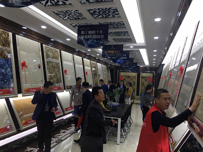 香蕉APP直播陶瓷砖香蕉APP视频污版在线营销总经理罗胜先生介绍香蕉APP直播陶新品——金刚釉II代