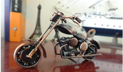 以铁为原材料,通过熔铸、焊接等方式制成的小摆件,常见的铁艺品有插花桶、笔筒笔座、铁质模型等.