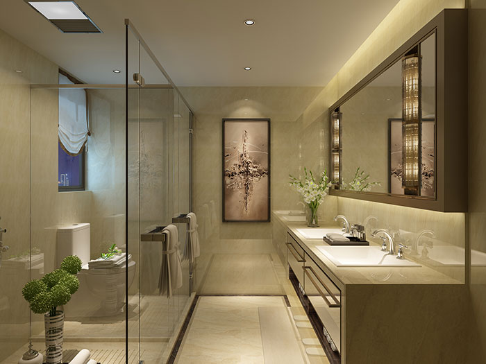 纯净的米黄色,十分柔和、温暖,大面积使用,营造出温馨舒适的空间环境,砖面上丰润细腻的纹理,在灯光映衬下,若隐若现,使整个空间极具灵动感。