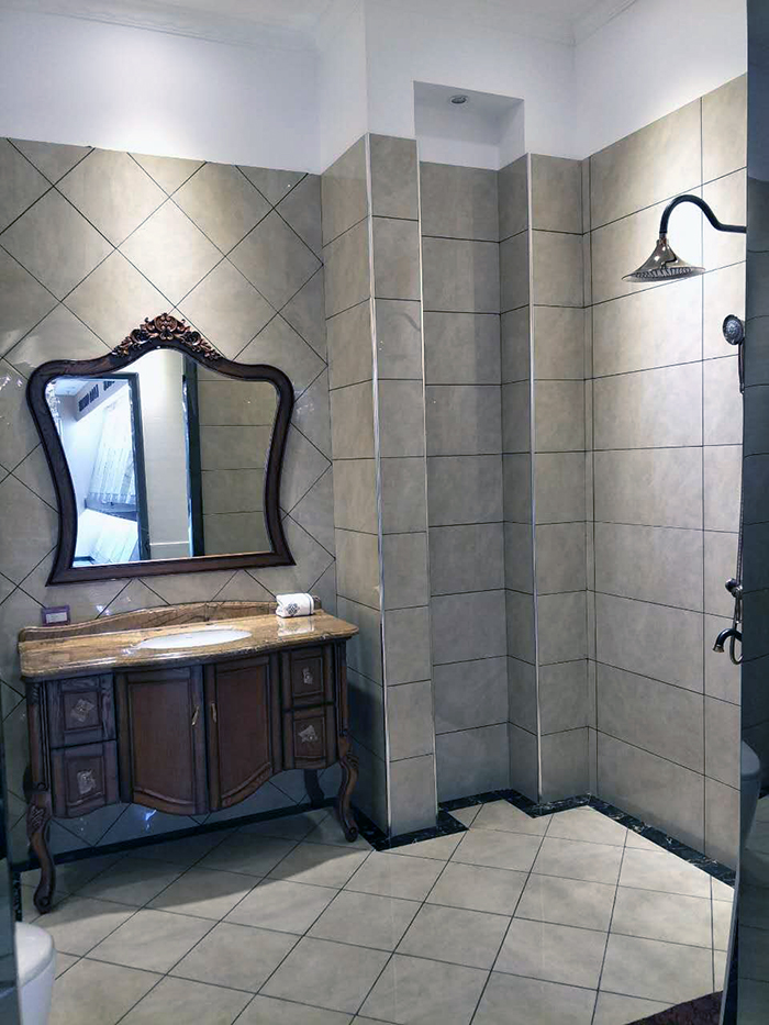 卫浴空间铺贴包括浅色上墙,深色下墙及配套花片产品,陶瓷一线香蕉APP视频污版在线香蕉APP直播陶不仅配套产品齐全,花色也比较新颖。