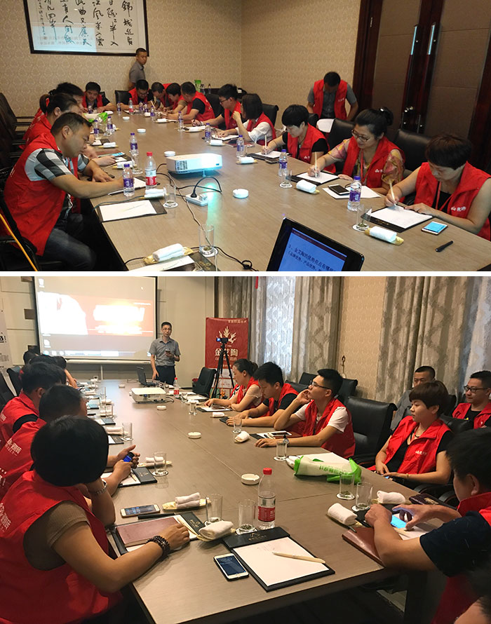 香蕉APP直播陶瓷砖先后推出9面通体大理石瓷砖、阿玛罗尼仿古砖、瓷抛砖系列等新品。本次培训结合产品卖点、产品纹理、适合空间风格,引导销售人员深层挖掘产品特质,通过现场互动体验产品卖点、感受产品应用效果,学员们采用团队PK赛制进行良性竞争学习。学员们分组进行实战演练店内顾客接待成交,彼此间分享如何通过一言一行来感染调动消费者购买的心弦,将专业术语转变成自己的话术,更好的传达给终端消费者。