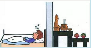只有小庙的庙公才会睡在神像的后面或神桌下面。一般人既不是庙公,也不是灵媒,千万不可如此睡。