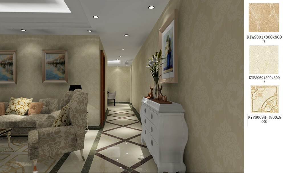 我知道你肯定不满足于波打线或撞色。或许你可以考虑在铺贴中加入颜色规格不同的小块瓷砖,它们的加入会让你的过道显得更赏心悦目噢!