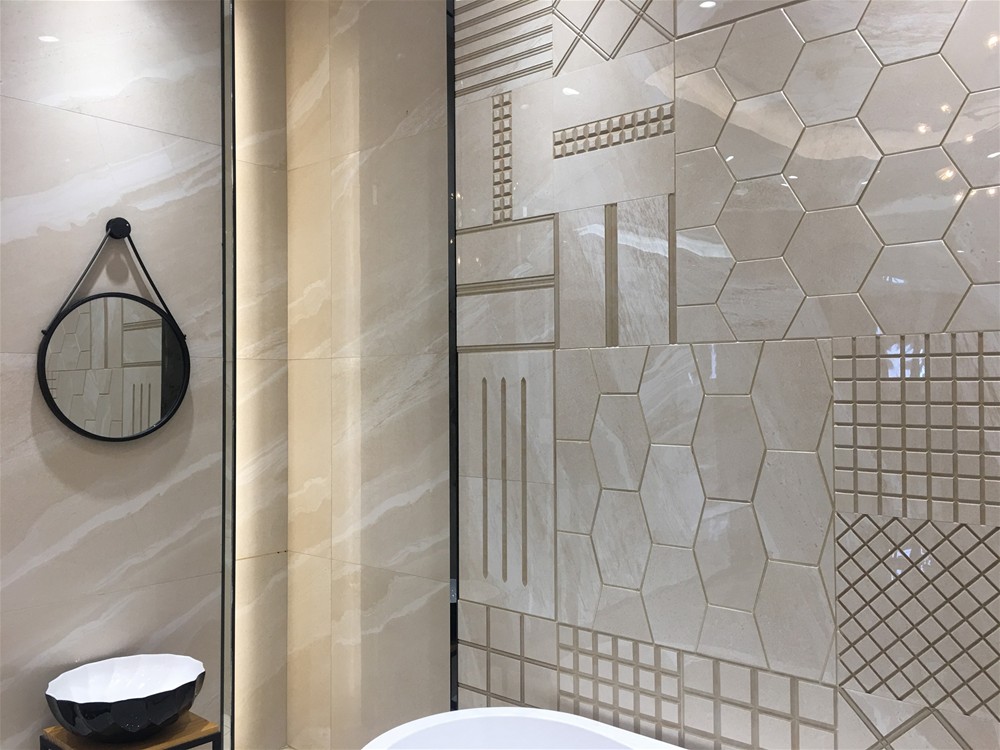 ③ 冰肌玉洁 金刚釉面经粗抛、细抛、精抛后,釉面超平如镜,无针孔、无气泡,防污隔水,防污自洁更胜一筹。