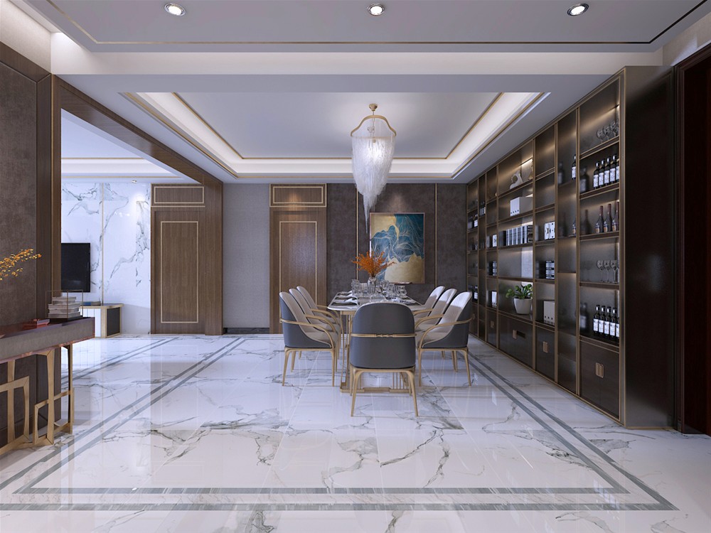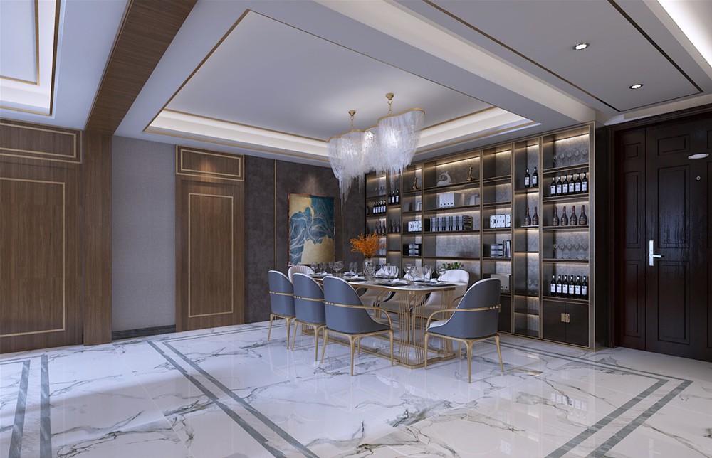 线条流畅的藏蓝色餐桌椅调节餐厅的素静