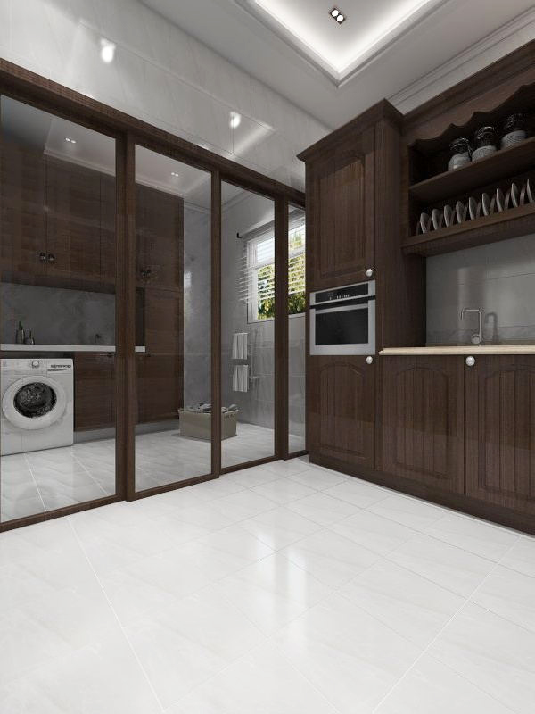 加之铺设的大理石纹理白色瓷砖,
