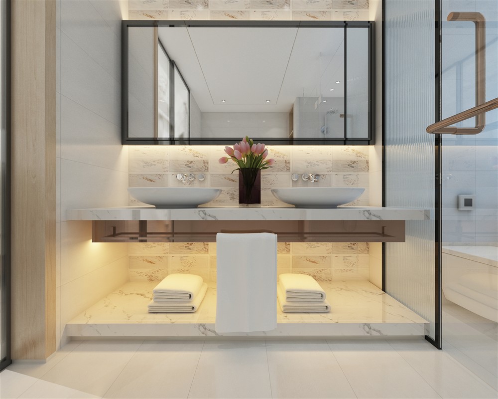 温润如雪的“肌肤”表层,细腻雅致,透射出不言而喻的质感,如汉白玉般的洁白无瑕,再铺之以叛逆而不顽劣的灰色纹理,尽善尽美地演绎出了爵士白清风脱俗与桀骜不驯的特质,使其拼接铺贴的空间优雅、脱俗、气质、意境无穷。